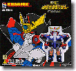 Kubrick version of the big, kind of goofy looking mecha. Amour and weapons snap on and off so you can recreate the transformation sequence..