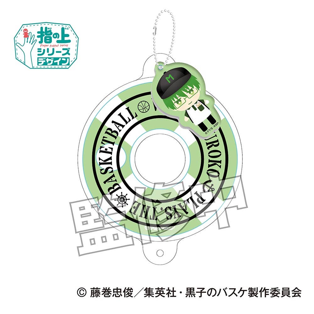 An acrylic keychain featuring full color artwork of "Kuroko's Basketball" character Shintaro Midorima in an adorable chibi finger-puppet style, and comes with a green swim ring. Order yours today!