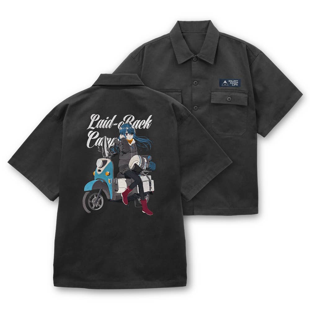 Laid-Back Camp SEASON 3: Original Illustration of Shima Rin Embroidered Work Shirt, Bike Break Ver. / GRAY-XL