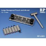Large Hexagonal Punch & Die Contains Die Plate, Six Punches (1.5-5mm) and a Mini-Hammer.