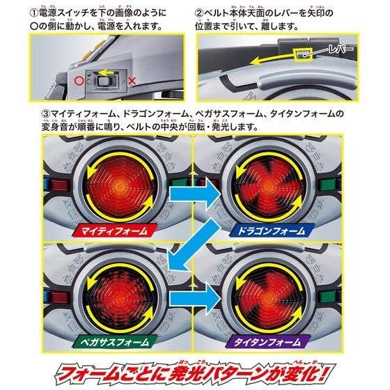 Kamen Rider Kuuga's transformation belt, Arcle, is now available in Bandai's Legend Belt Series! The same transformation sound heard in the TV series is activated while the central part of the belt rotates and glows red when you use the lever! The transformation sounds of both Mighty Form and Dragon Pegasus Titan Form are included. The light pattern changes according to the sound, too! Order yours now!