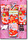 Dress your Licca doll up in a stylish, brightly-coloured kimono! Included are sandals and hand-covers (for helping her hands through the sleeves). Please note that these are designed for Licca dolls and may not fit dolls from other manufacturers.