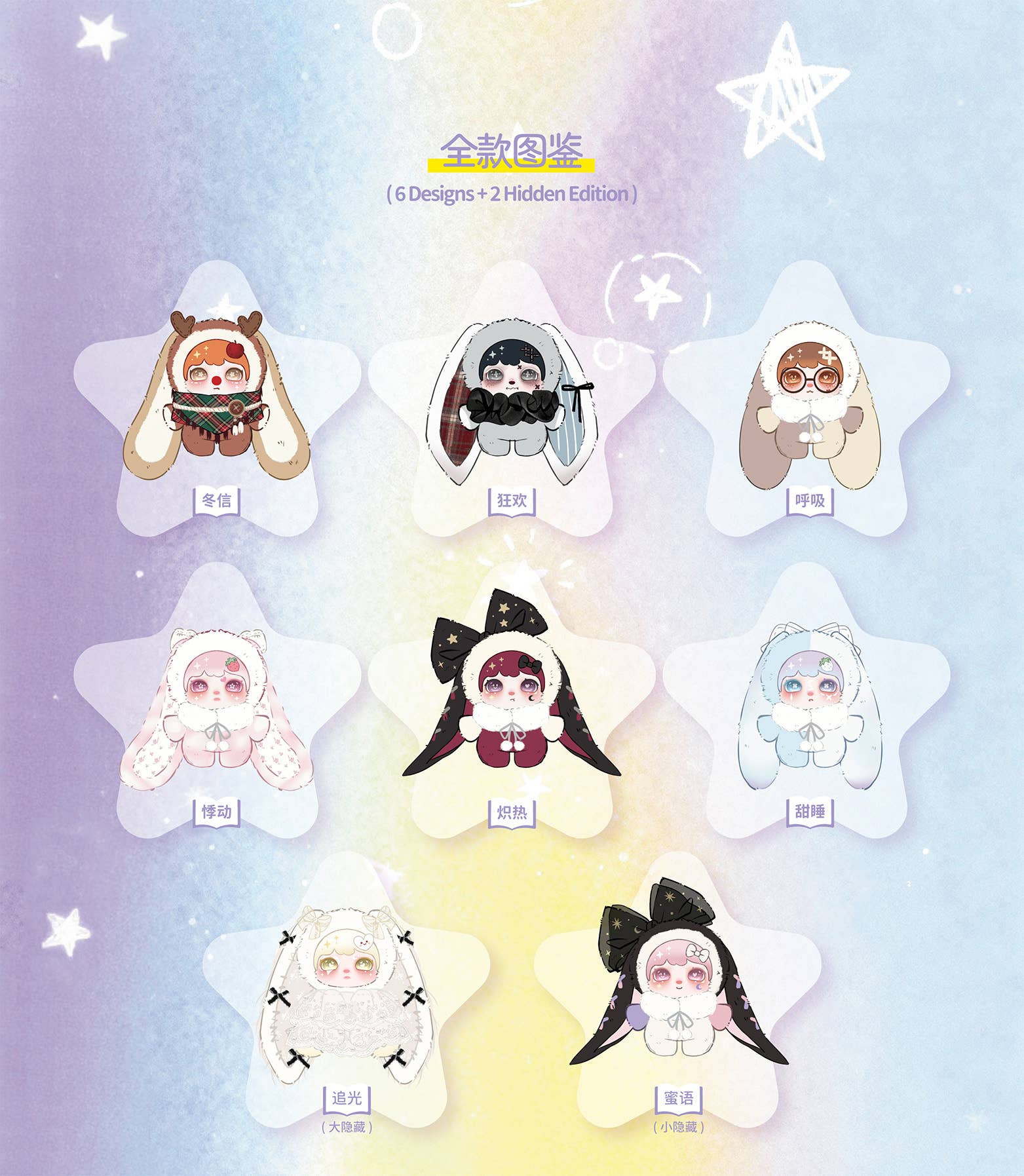 The up-and-coming Chinese manufacturer Lokiki Toys brings us their original trading plush series, "Lokiki Stardust on Paper"! Each of these adorable plush creatures has charming sparkling eyes that look like they've been sprinkled with stardust. There are six regular plushes to collect and trade, plus two secrets; they're randomly packed in boxes of six. Order yours today!
