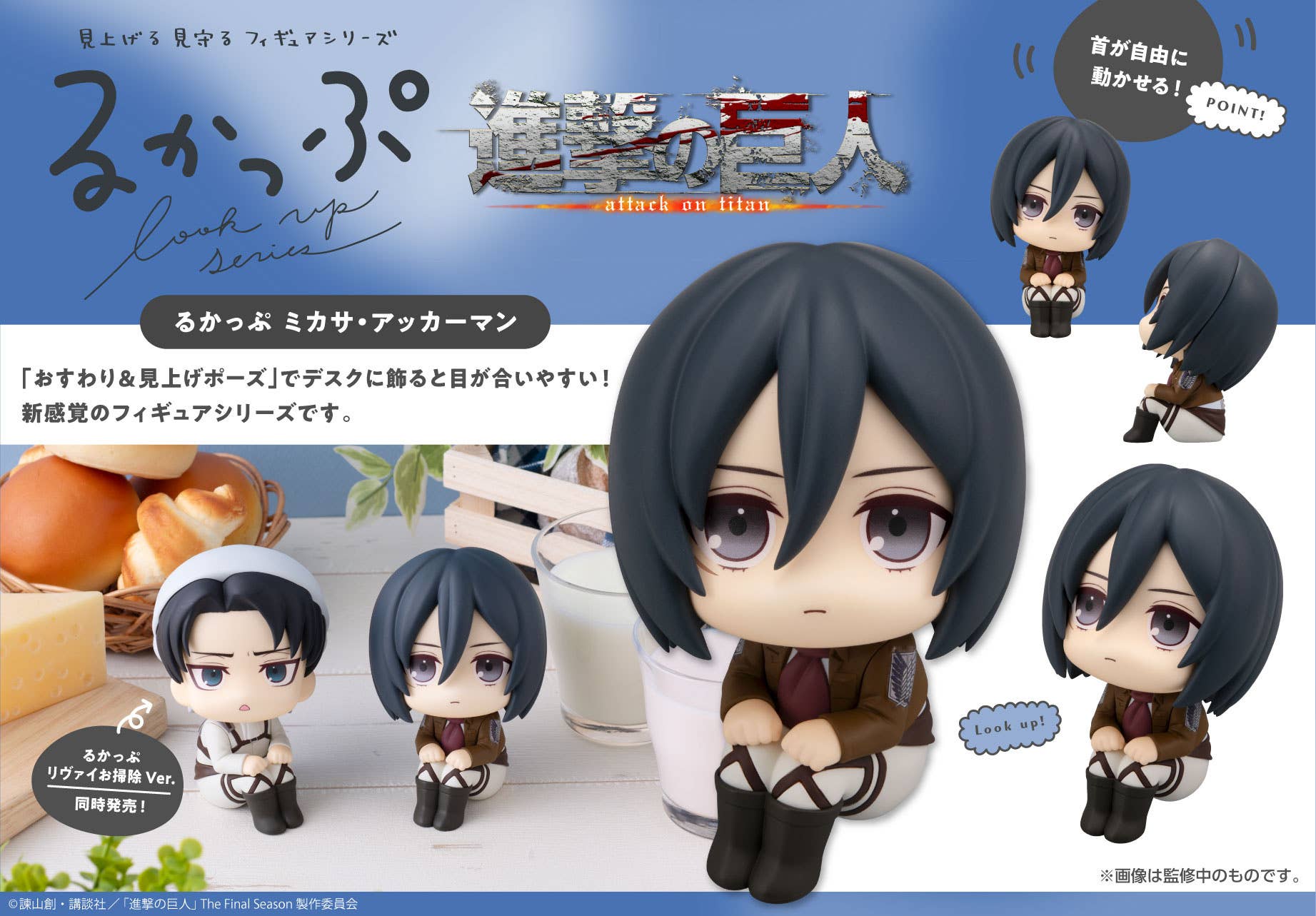 This series of figures from MegaHouse is called "Look Up" because they've been specifically designed to be looking up at you, making it easier to make eye contact with them when you display them at your desk -- and now Mikasa Ackerman from "Attack on Titan" is joining the lineup! With its large volume, slightly super-deformed design, and movable head, this figure will make you smile every time you look at it! Place your order now!