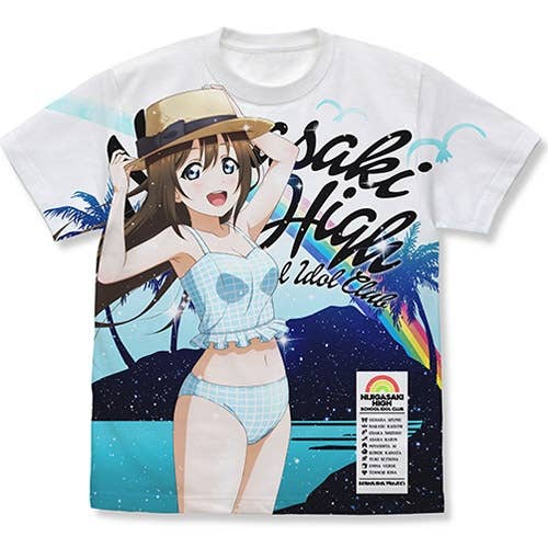 "Love Live! Sunshine!! Nijigasaki High School Idol Club" brings to you a new line of full graphic T-shirts for your enjoyment. This full graphic T-shirt features a full color illustration of the idol Shizuku Osaka (swimwear ver). This T-shirt makes for a great addition to any fan's wardrobe. Order today!