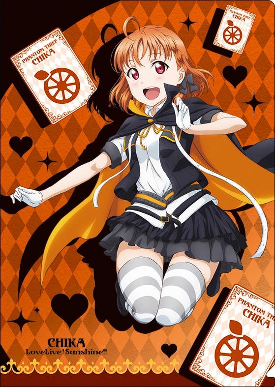 "Love Live! Sunshine!!" brings to you a new clear file for you to enjoy! This clear file features full color artwork of the character Chika Takami wearing her phantom thief costume over an orange background. Use this clear file to keep your documents safe and organized in style. An excellent addition to any fan's collection, order today!