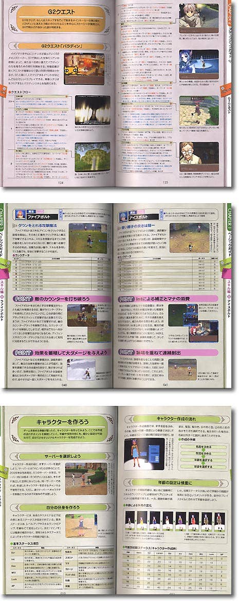Very thorough game guide to "Mabinogi", with character, enemy, world, and strategy information. 192 pages, all text in Japanese.