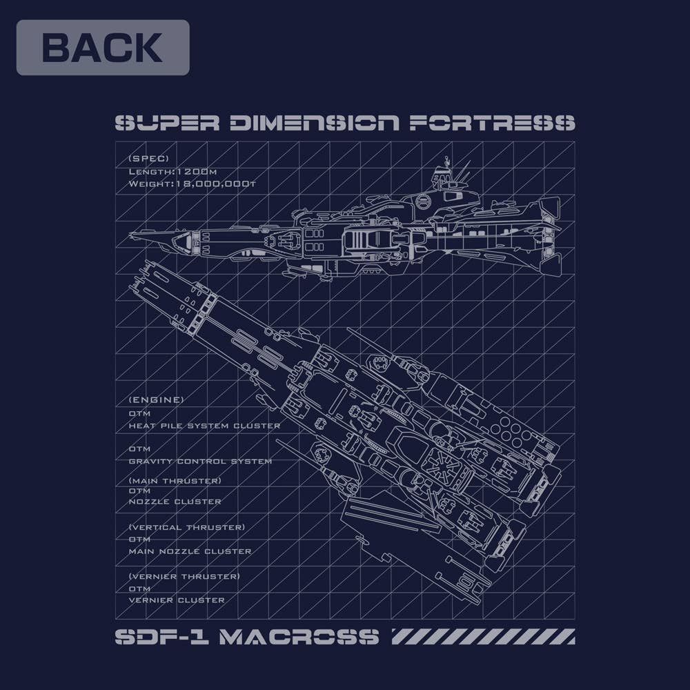 Inspired by the Joint Forces catalog data, this T-shirt from Cospa allows you to enjoy every detail of the SDF-1 Macross, with its detailed technical drawing on the back, and a sleek silhouette on the front! Made from 100 percent cotton for maximum comfort and durability. Place your order today!