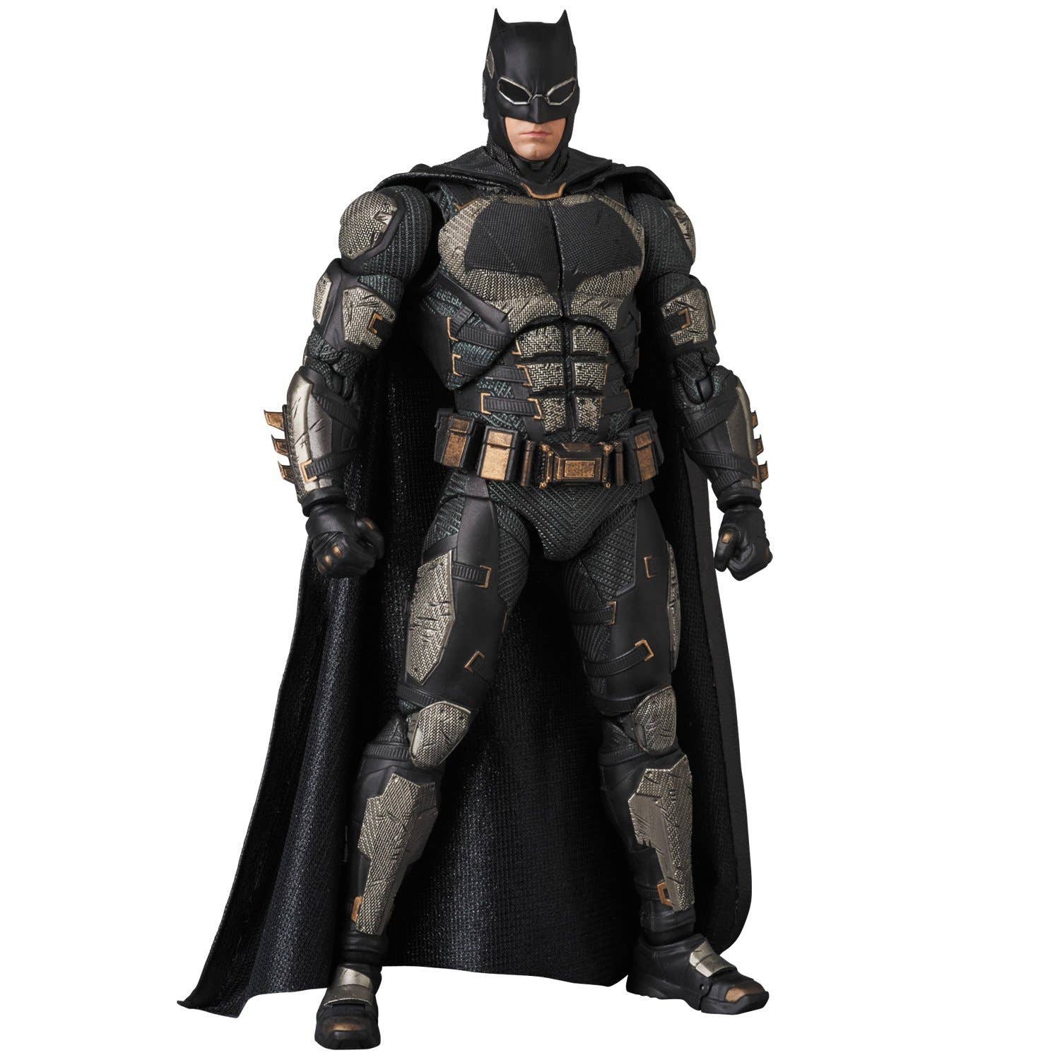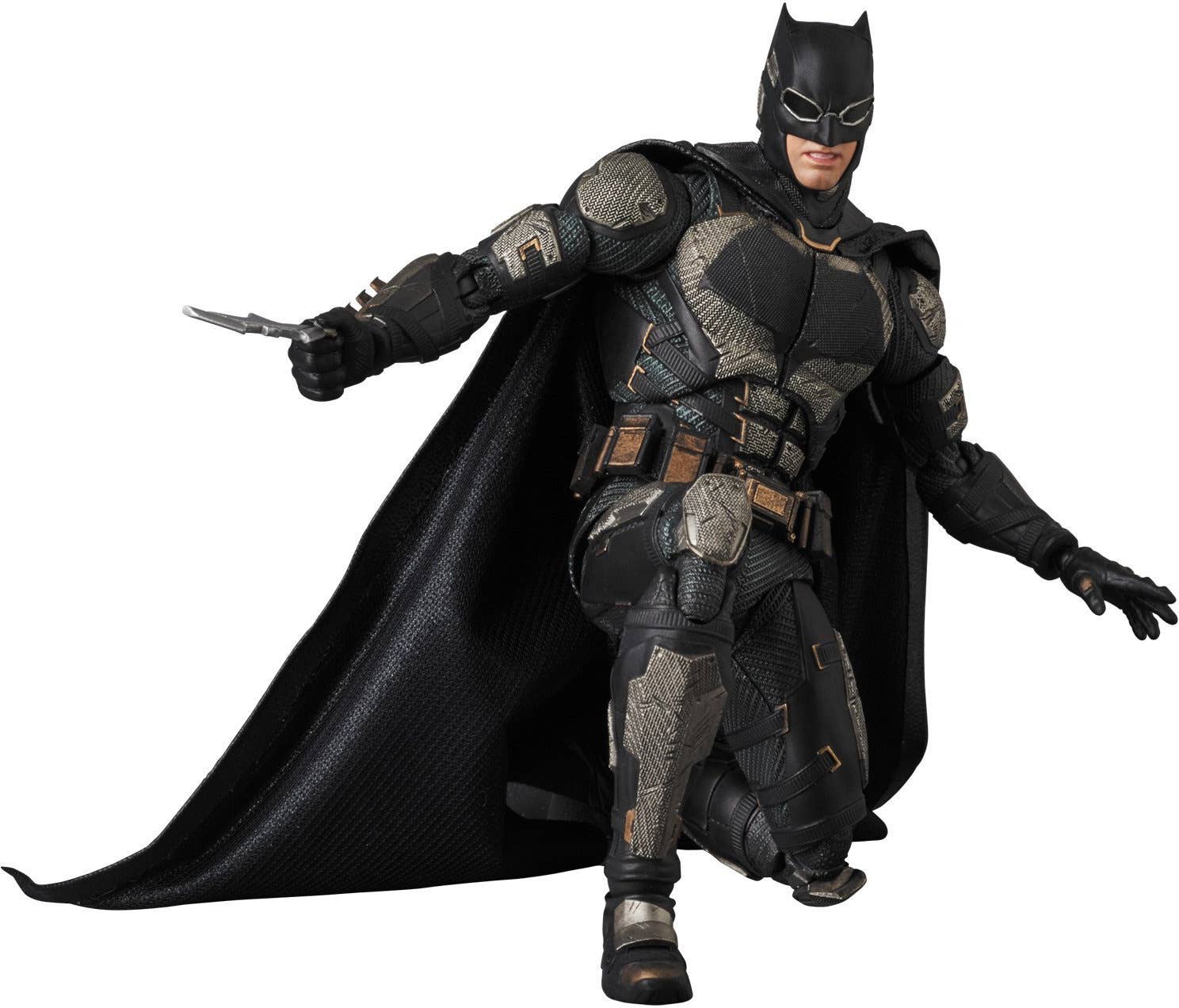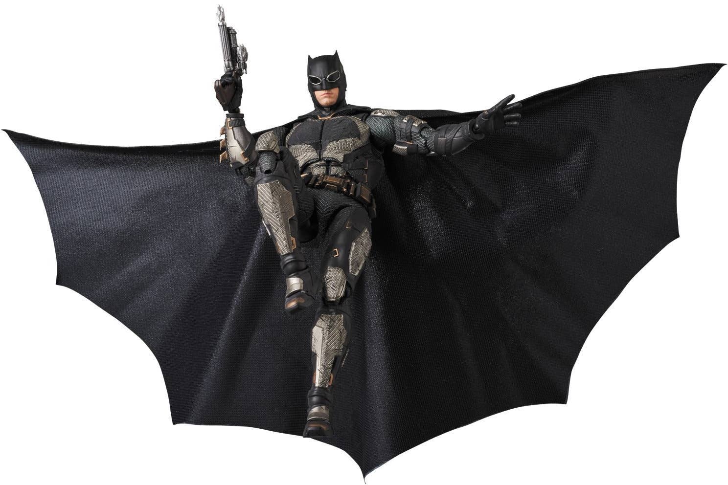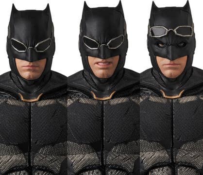 Batman from "Justice League" joins the MAFEX team from Medicom, in his tactical suit! He has three interchangeable faces, a fabric cape with a wired edge for dramatic windblown poses, interchangeable hands, three batarangs, two grapnel guns, a Kryptonite gun, a smoke grenade, 3 mines and a stand. Don't miss out on this ultimate hero, and order him today!