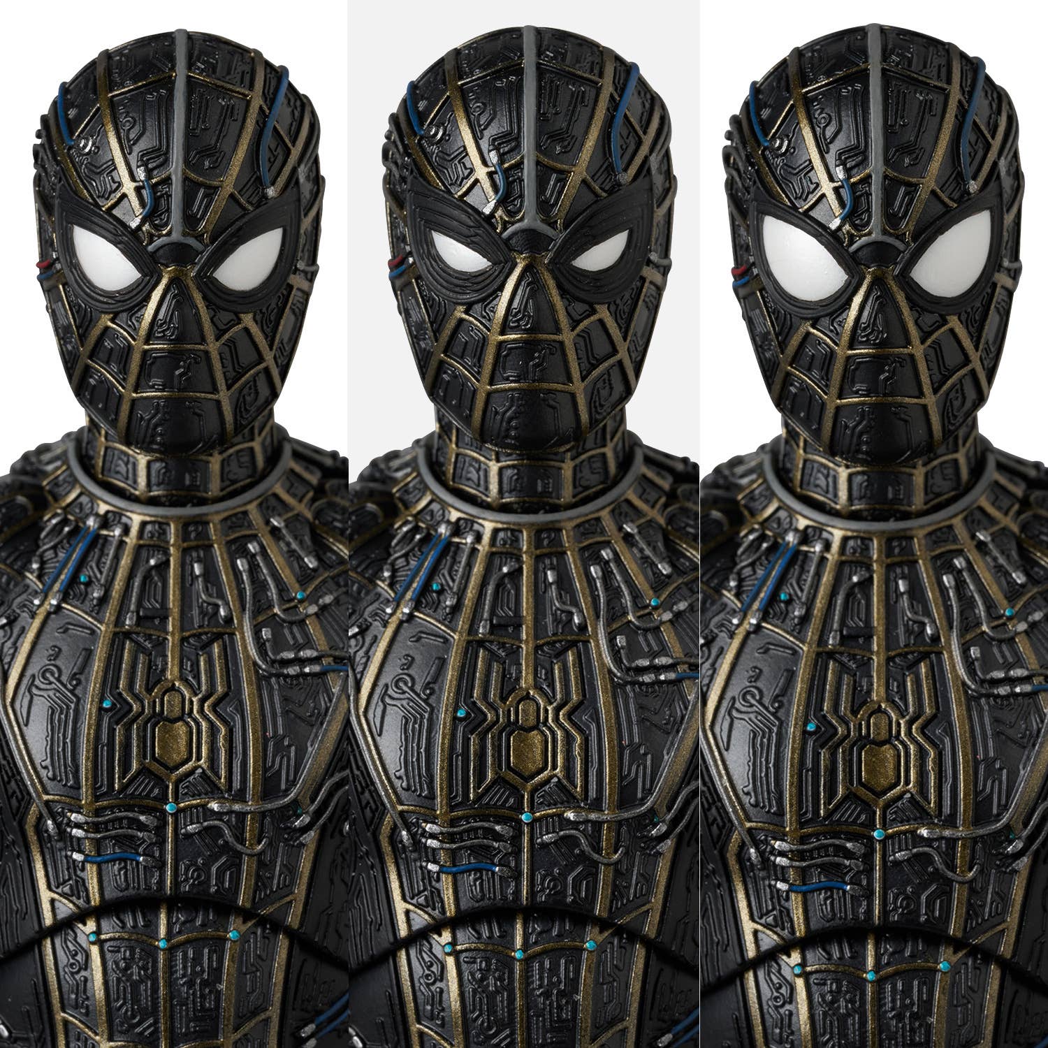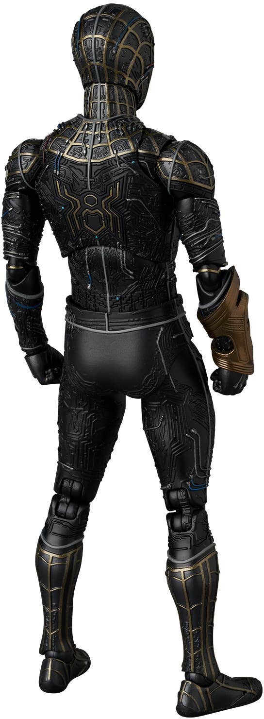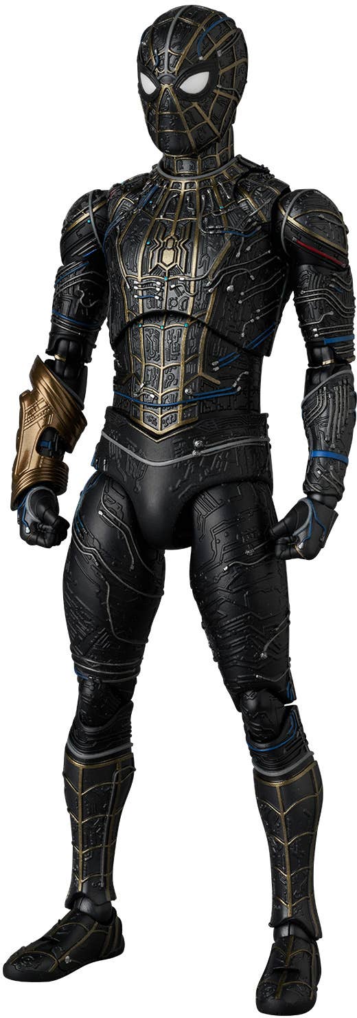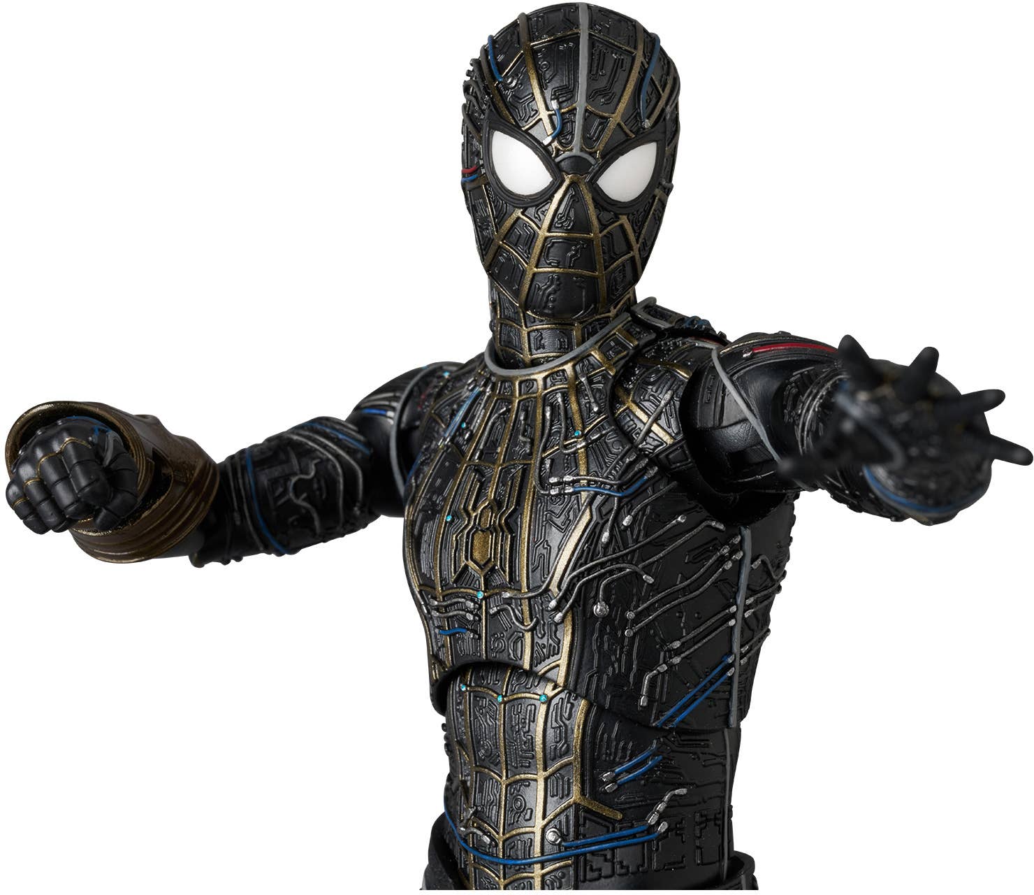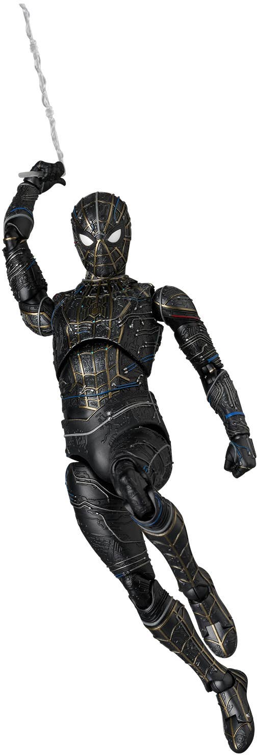 Spider-Man in his distinctive black-and-gold suit from "Spider-Man: No Way Home" joins the "MAFEX" action-figure lineup from Medicom! This insanely posable figure comes with three interchangeable heads, plus effect parts for the Magic Gate, the Magic Gauntlet, various web parts, and an articulated figure stand for airborne wall-crawling poses! Order him for your own collection today!