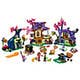 Take part in exciting new Elvendale adventures in the Goblin Village, featuring three buildings loaded with accessories, including a crystal workshop with magnifying glass and rotating crystal platform, cage-making workshop with lookout perch and dungeon with exploding gate function, activated by pulling down on the plant. Includes two mini-doll figures plus three goblins, a panther and a chameleon figure.