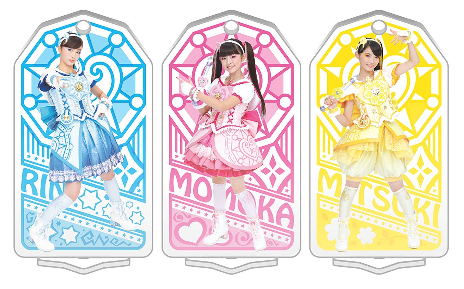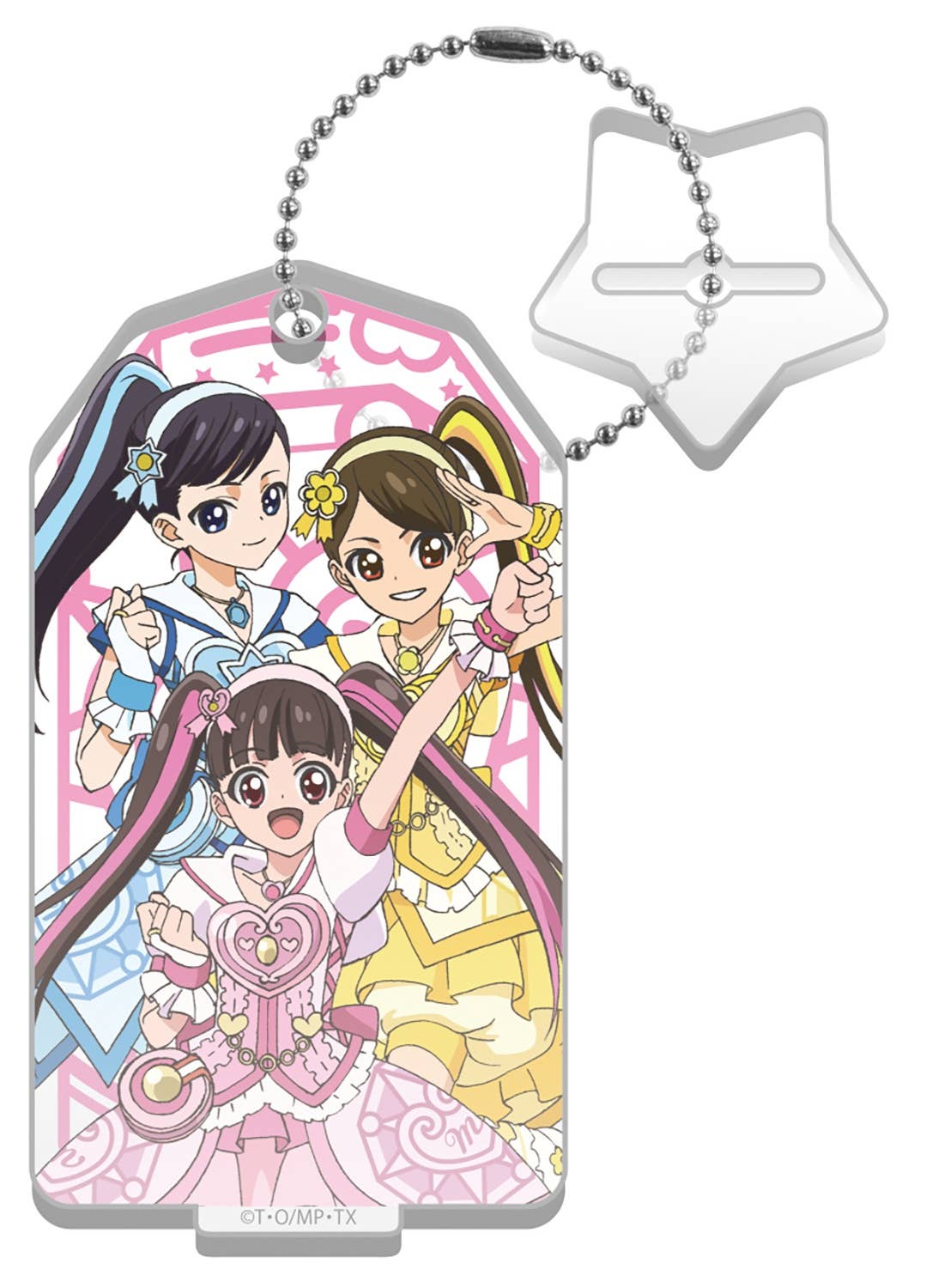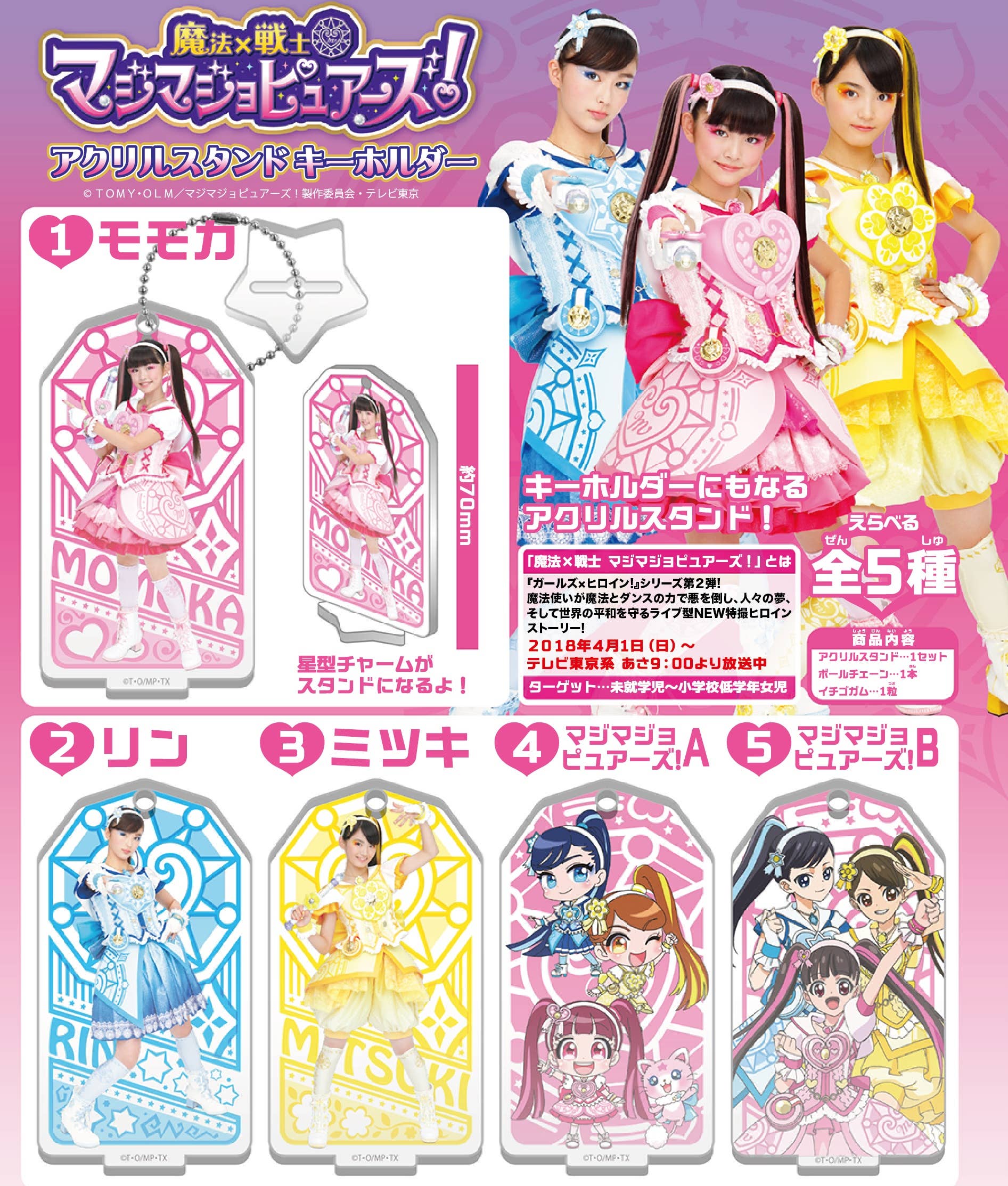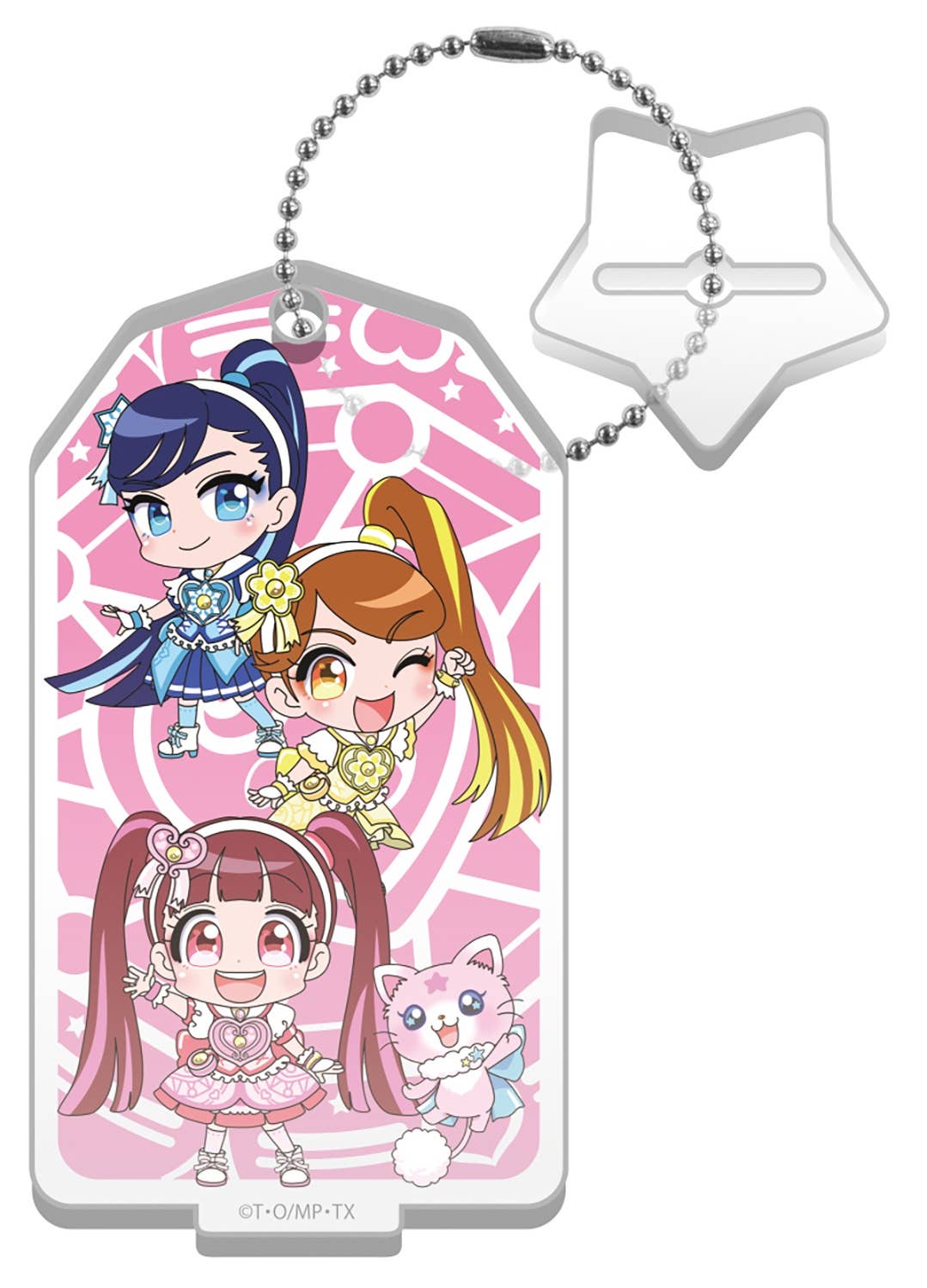 Here's a set of acrylic stands from a new heroine story "Magic x Warrior Magi Majo Pures!" Each stand features a different character on a colorful, stylized background, and includes a piece of gum, a star-shaped display base, and a metal ball chain so you can choose how to display your own!