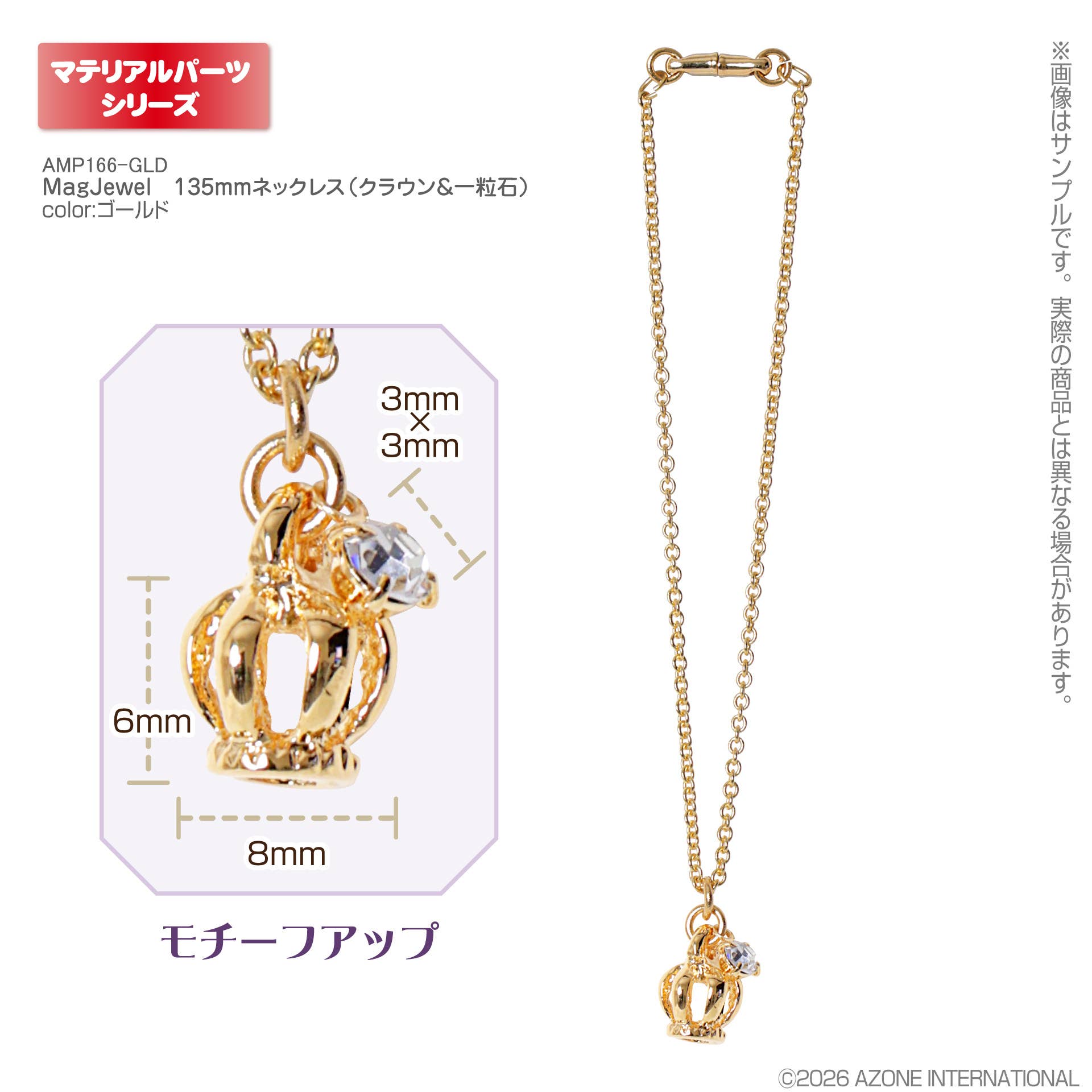 MagJewel 135mm Necklace (Crown & Solitaire Stone) Gold