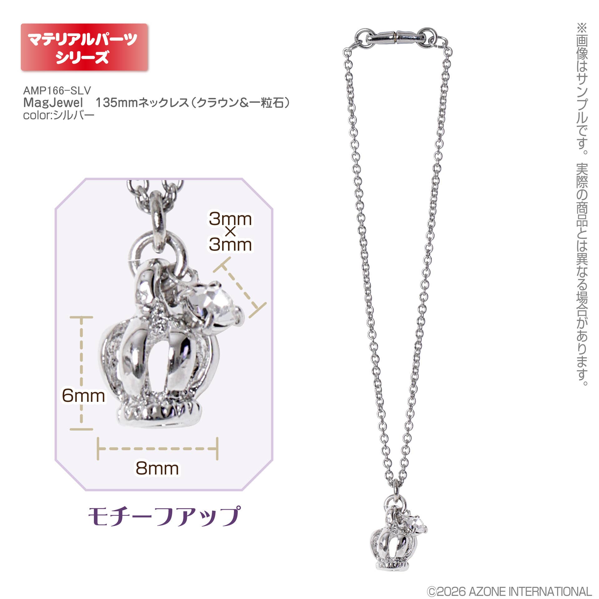 MagJewel 135mm Necklace (Crown & Solitaire Stone) Silver
