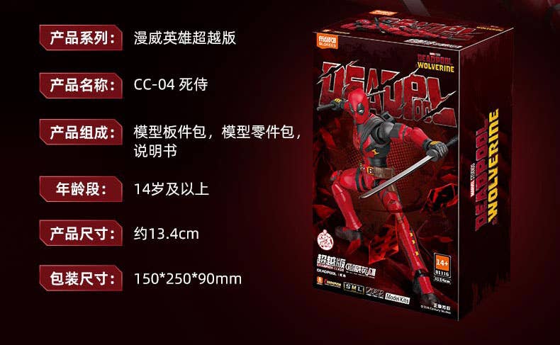 Deadpool, Marvel's "Merc with a Mouth," is now a fun action-figure model kit from Blokees! He'll be fully posable after assembly, with interchangeable hands, an interchangeable head, and three swords. Order him for your own collection today!