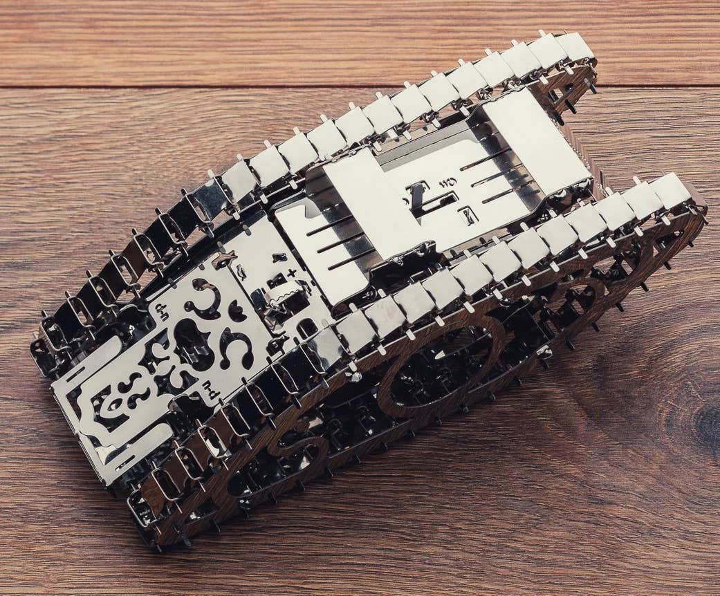 Updated version of the Marvel Tank. Optimized assembly. A metal model kit of the tank from the times of the First World War, made in a completely peaceful patterned style. Self-propelled machine that overcomes obstacles with its shiny tracks. Works from a spring. Scale 1:56, Size 141x49x65mm.