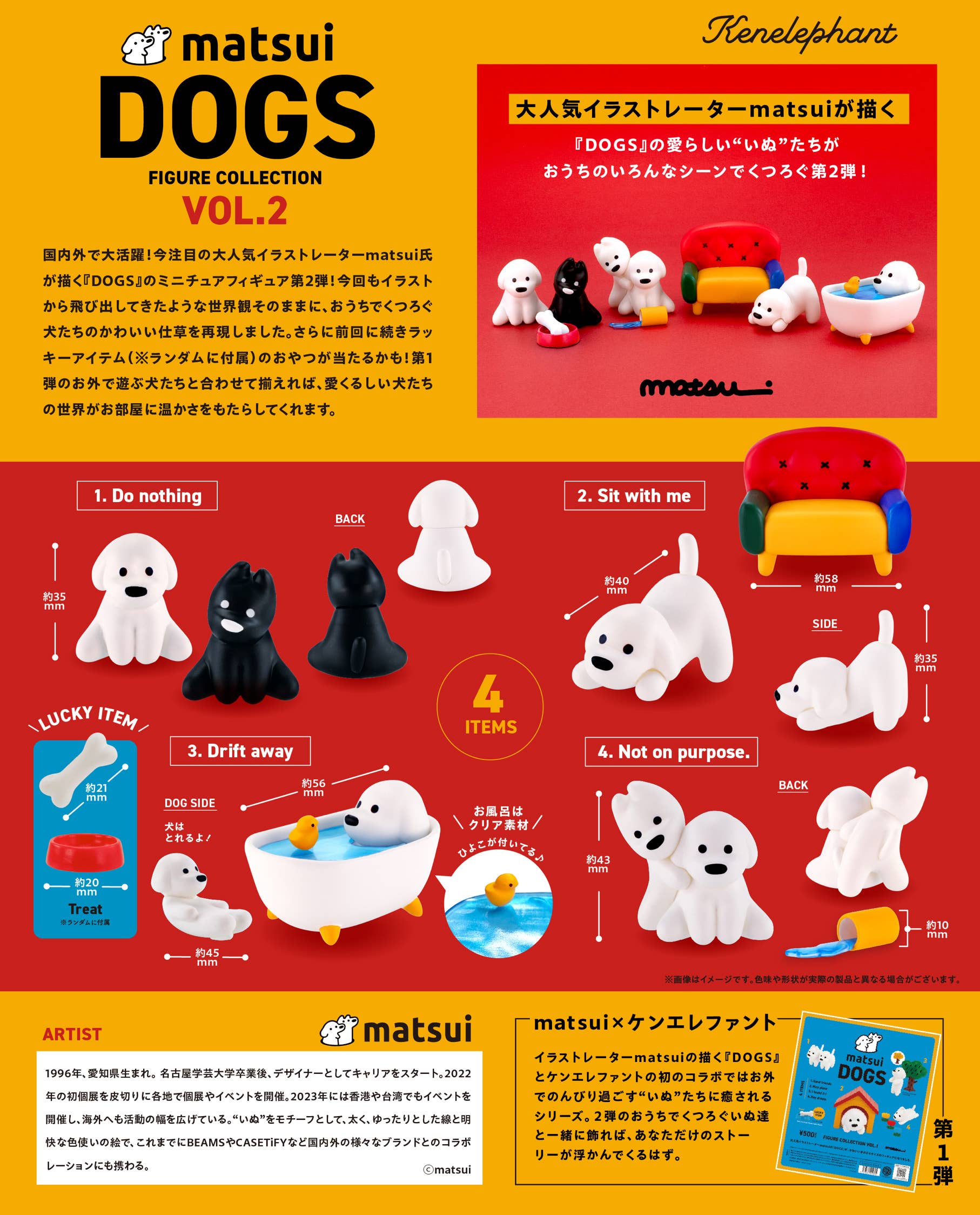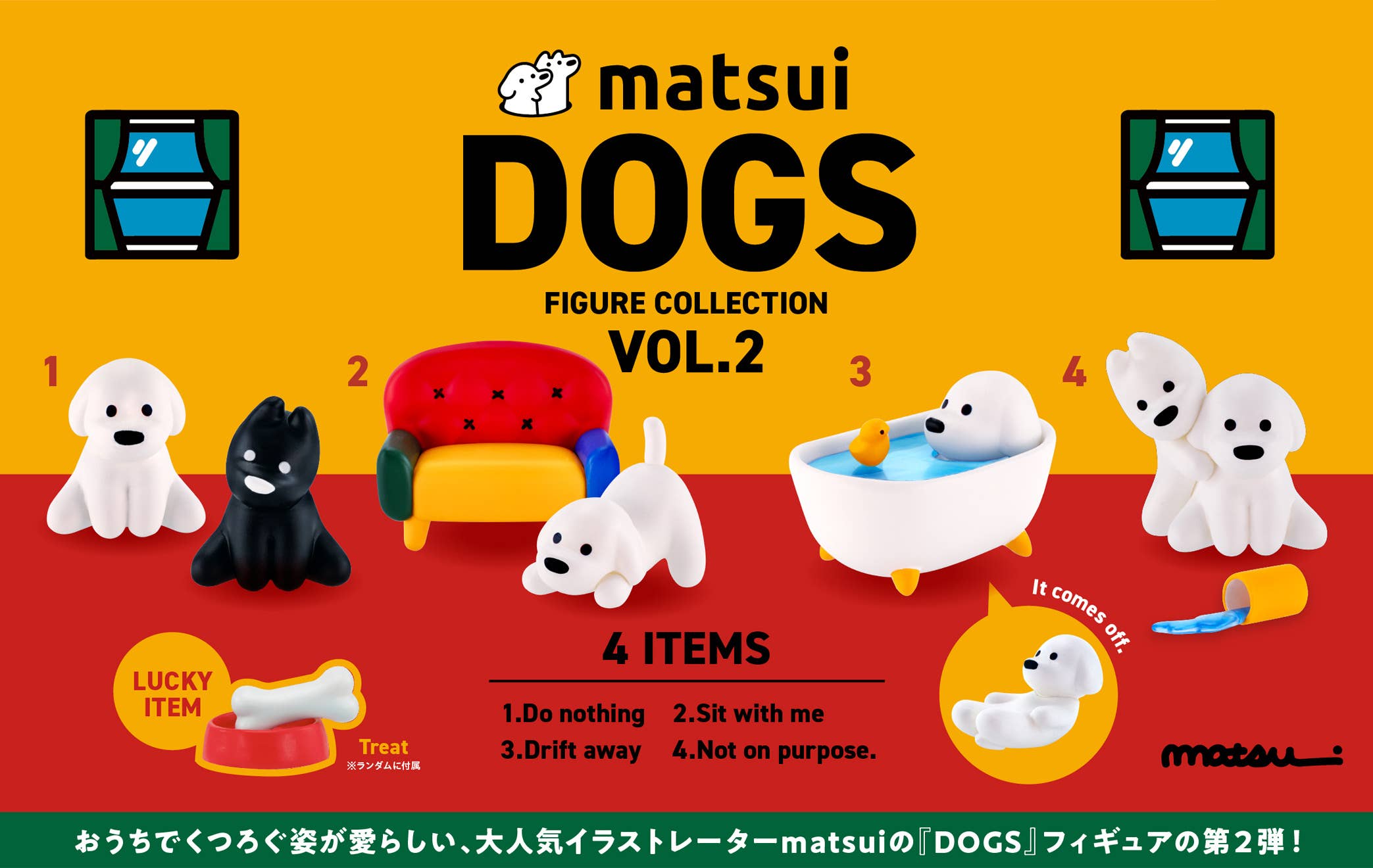 Ken Elefant brings us the second assortment of figures of adorable dogs as drawn by the popular illustrator matsui, showing the pups in various situations at home! There are four different figures of precocious pooches to collect and trade; they're randomly packed in boxes of 12. You might also receive the "lucky item" of a bone with a dog bowl! Order yours today!