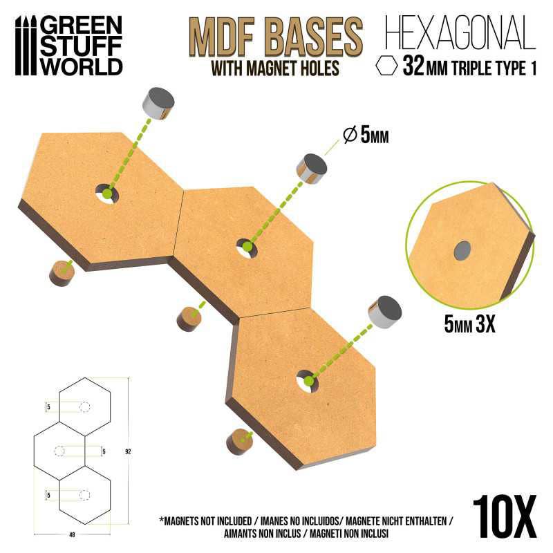 MDF Hexagonal Triple Base Set type 1 (Diameter 32mm) 10 pcs