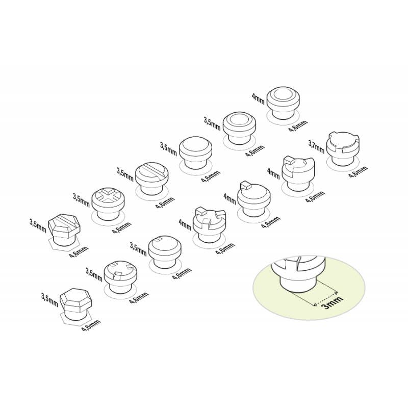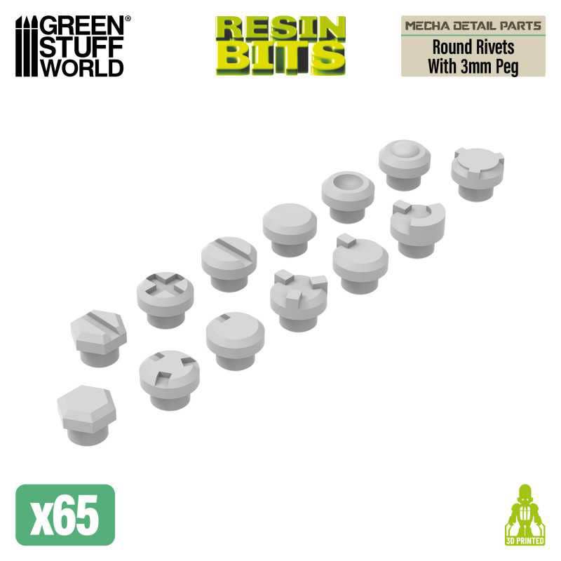 Mecha Detail Parts - Round Rivets with 3 mm Pegs (65pcs)