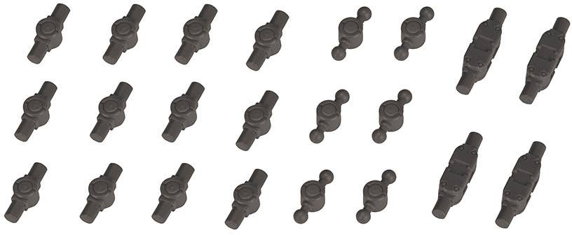 If you have "Hexa Gear" or "Gigantic Arms" kits that could use some spare joints, here's what you need! This generous supply of 5mm-diameter joints with a simple design are perfect to replace or expand joints; molded in gunmetal-color plastic, they can be used in many different combinations. Order yours today!