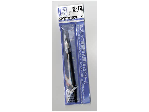 Handy tool with a durable ceramic blade, perfect for scraping seams off of plastic ro resin model parts. One end is flat, the other is rounded. Please note that the photos shown are of a prototype; the production version may vary.