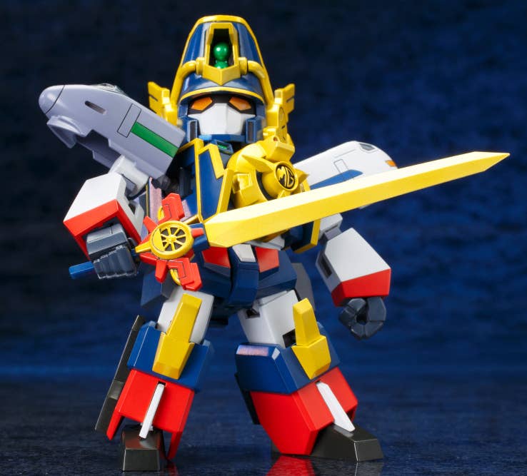 Kotobukiya's super-deformed "D-Style" version of Might Gaine from "The Brave Express Might Gaine" is back! It's molded in color and features snap-fit construction, so neither glue nor paint are necessary to enjoy this model kit. Both the Gaine and the Might Wing can be transformed into Shinkansen mode; you can complete Might Gaine by combining it with Locomolyzer. The sword and an interchangeable right hand are included; this kit also features the first pull-out joint in the series, adopted to the robot's chest! This gives the Might Gaine the widest range of motion in the history of "D-Style" kits, so you can enjoy lots of powerful posing possibilities! Order yours today!