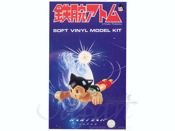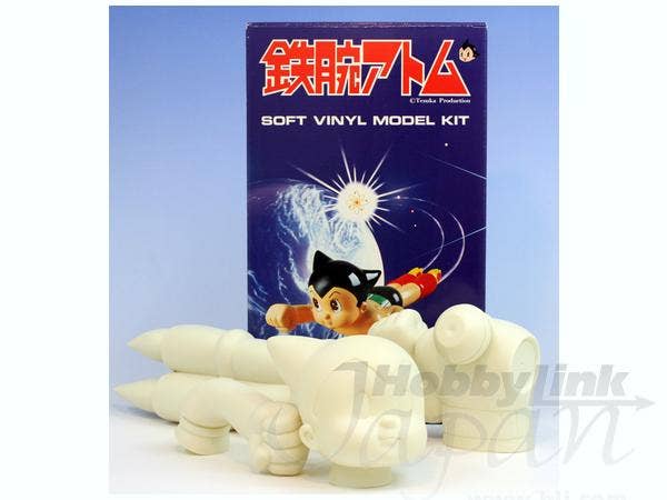 An unassembled, unpainted soft vinyl kit of that lovable little robot boy, Mighty Atom! Captured in a flying pose, with rocket exhaust flaming out of his feet.