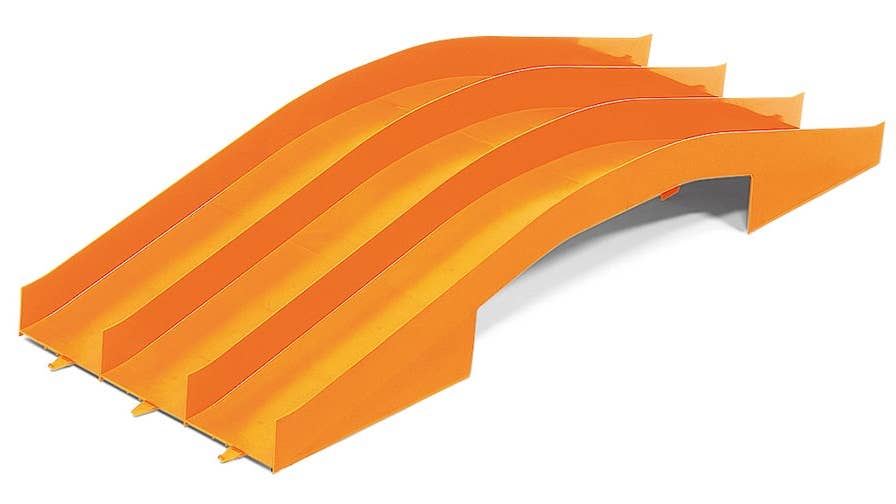 This 11cm-tall slope section can be attached to your three-lane Japan Cup Junior Circuit to provide variations in your course layout! Made of vivid orange ABS plastic.