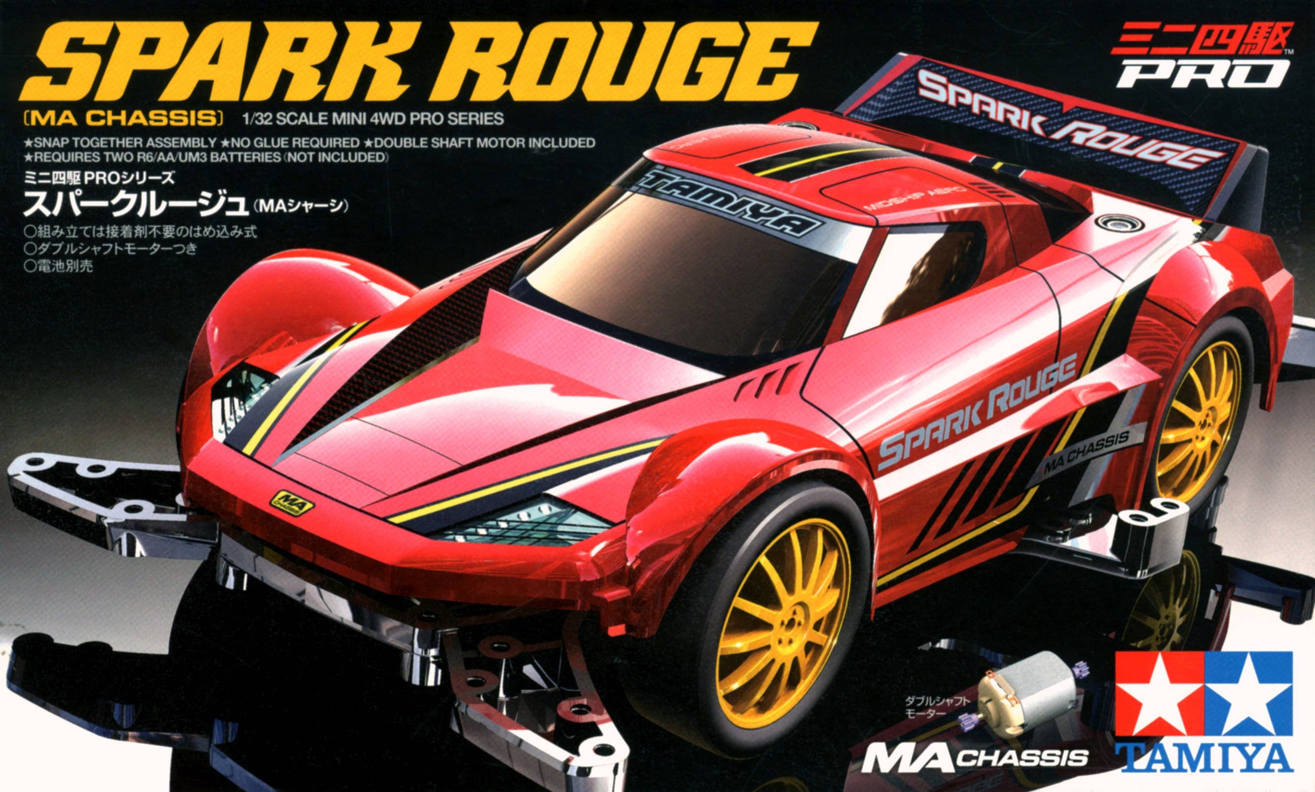 This is a snap-fit mini 4WD pro series auto with high-performance MA chassis in black. Also features: