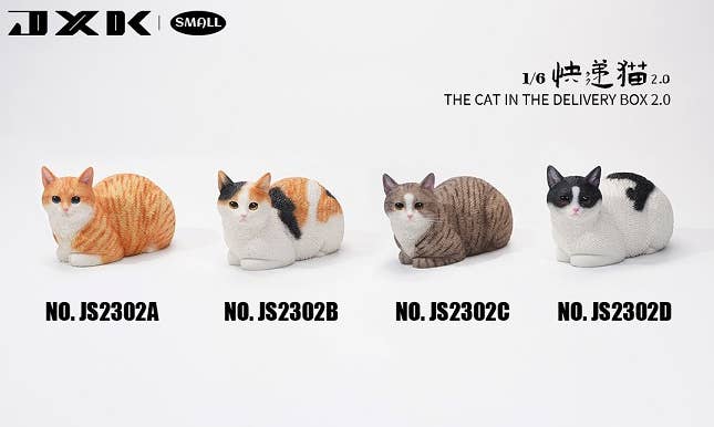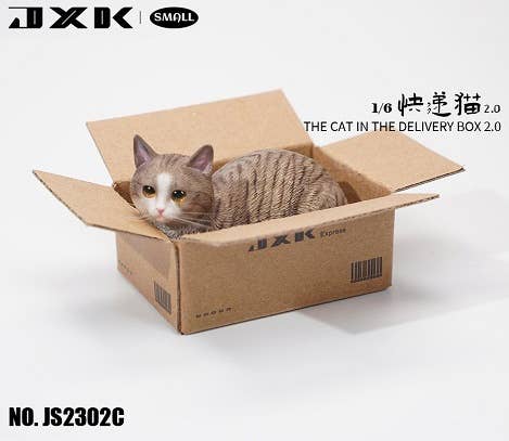 Everyone knows cats love to sit in open cardboard boxes -- and now you can get your very own 1/6-scale cat with two boxes to choose from! The cats are available in a variety of cat colors. They make great pets for your favorite figures, and are fun to display on their own, too. You'll love it -- order yours today!
