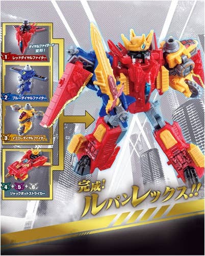 The giant robo that appeared in the "Lupinranger vs. Patranger" summer movie gets a Mini-Pla release from Bandai! By combining the Jackpot Striker parts A, B and C, you can complete the Jackpot Striker, and by combining the 3 Dial Fighters, you can recreate the Lupin Kaiser Rex! Each pack comes with a piece of ramune candy. Order today!