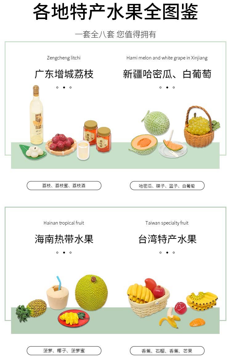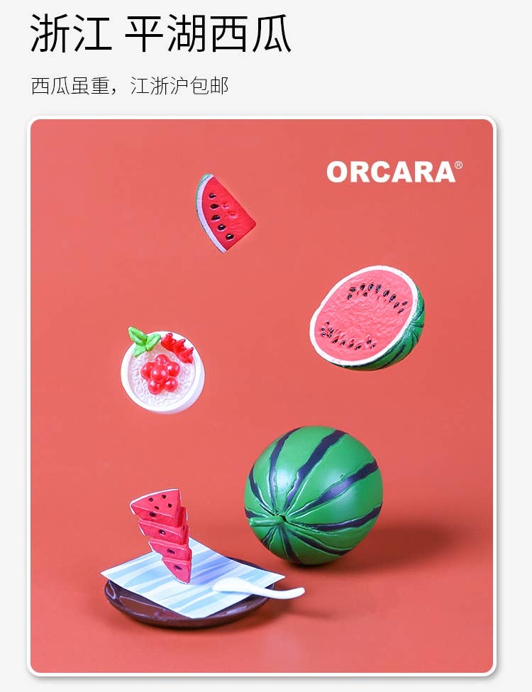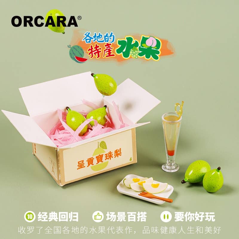 Enjoy a wide variety of common and exotic fruit with these delightfully detailed miniature items from Orcara -- there's watermelon, durian, bananas and more! There are eight different items available, randomly packed in boxes of eight. Place your order today!
