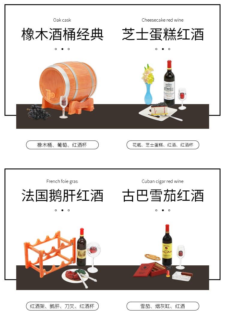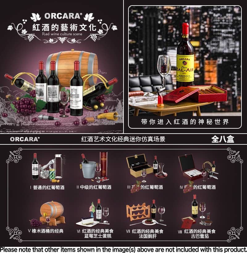 Orcara brings us an amazing lineup of miniature items seen at a winery, including glasses, bottles, casks and more! There are eight different items available, randomly packed in boxes of eight. Place your order today!