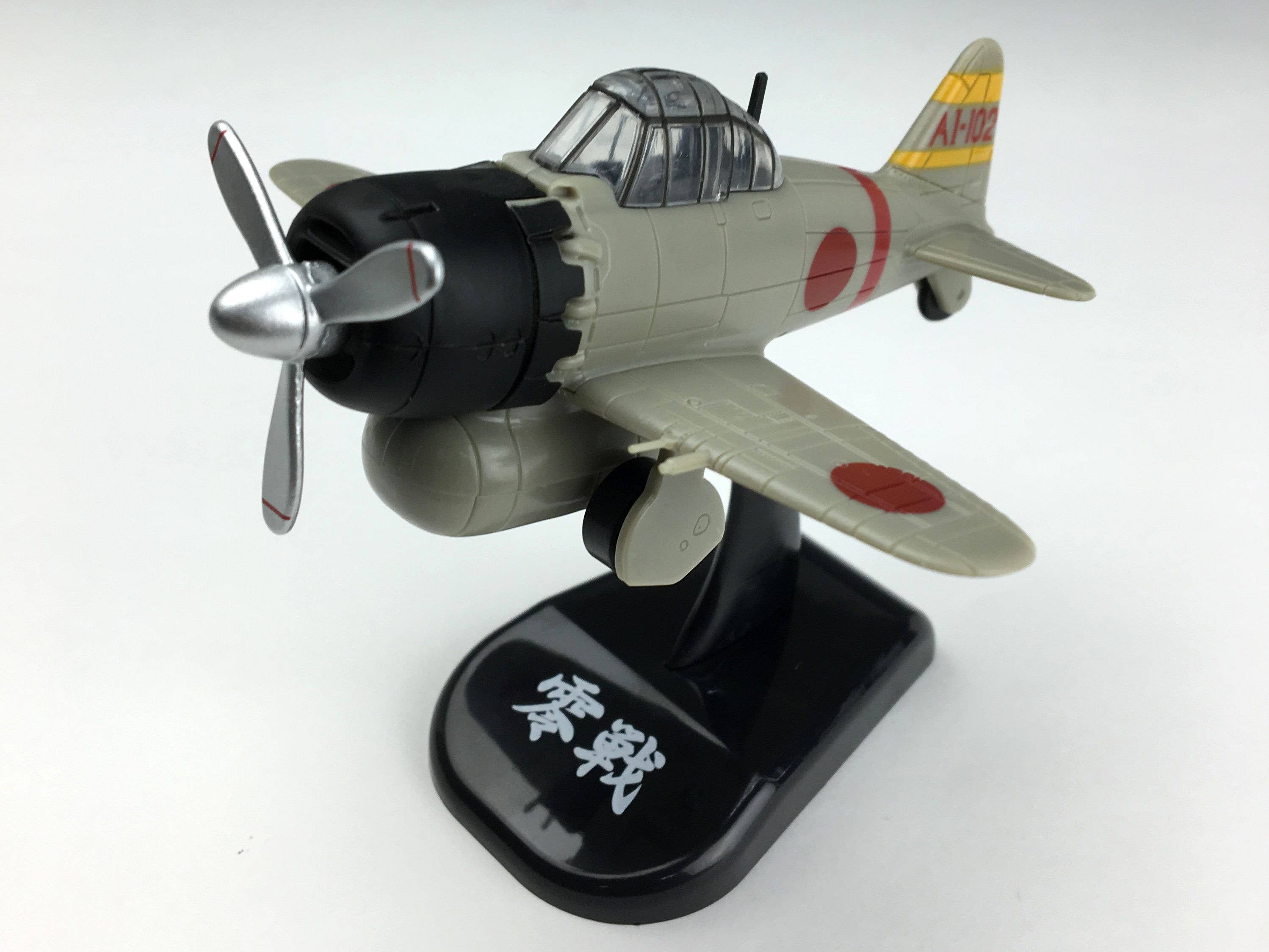 This super-deformed style figure of a Mitsubishi A6M Zero in gray features a propeller that moves! A stand is included for in-flight display. Order yours today!
