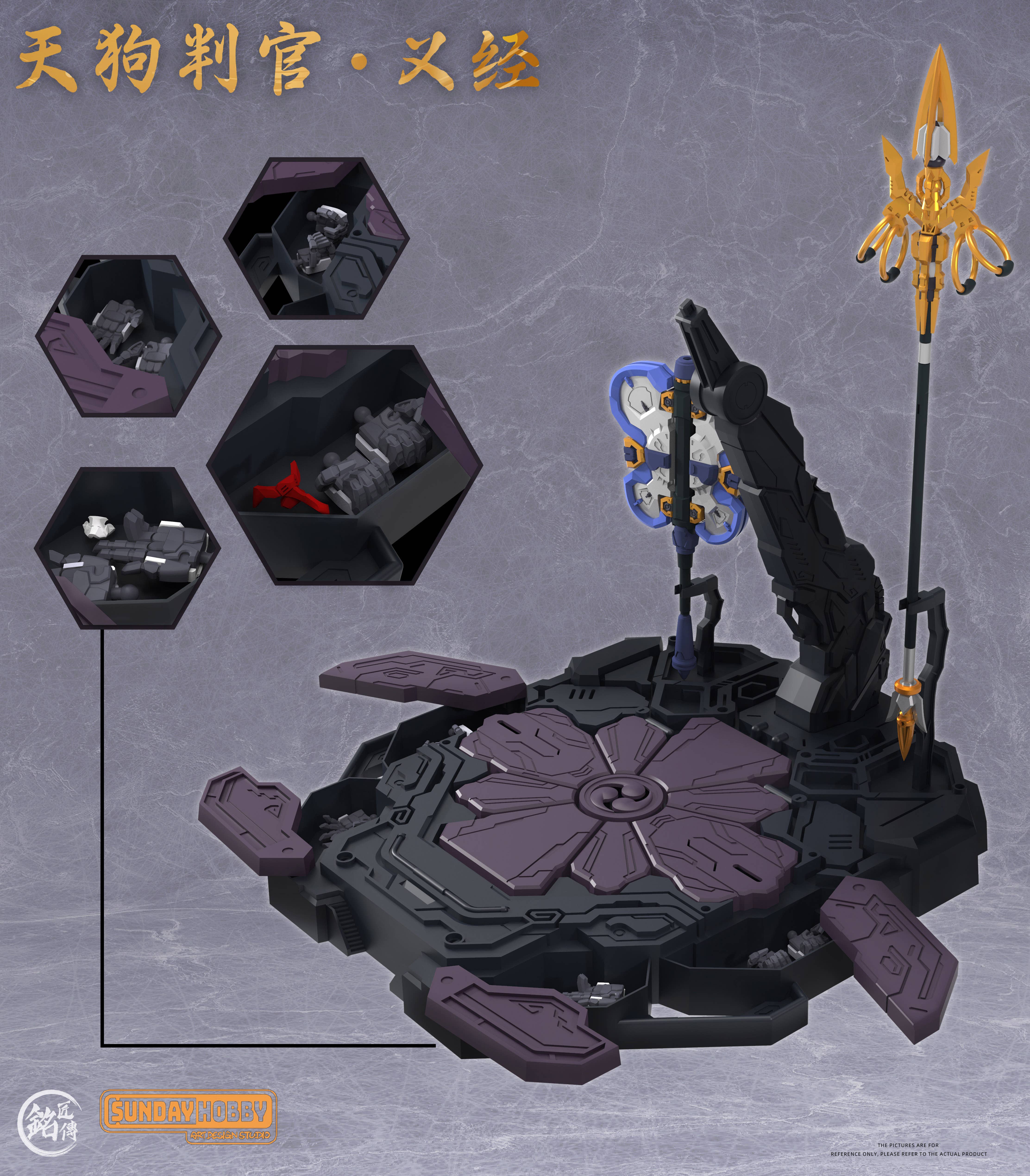He's back! MJZ Studio collaborates with Sunday Hobby to bring us a model kit of their original character, Tengu Judge Yoshitsune! In honor of the anecdote that Yoshitsune learned martial arts from the Tengu of Mount Kurama, the exterior of this majestic robot is designed to resemble a Tengu, and it comes with a full range of weapons and equipment, including a sword, a shakujo, and a feather fan! Don't miss out on this masterpiece mecha -- order yours today!
