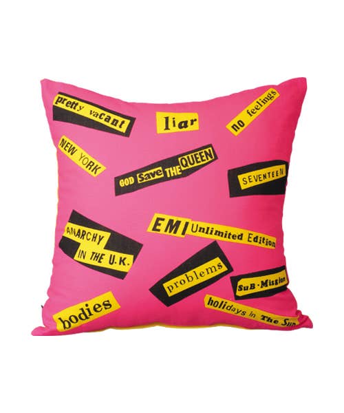 Here's a fantastic cushion featuring a design of the infamous 1977 album, "Never Mind the Bollock, Here's the Sex Pistols" Perfect foy any Sex Pistols fan! Cushion measures approximately 45cm on each side, and is super comfy! The cover also has a handy zipper.