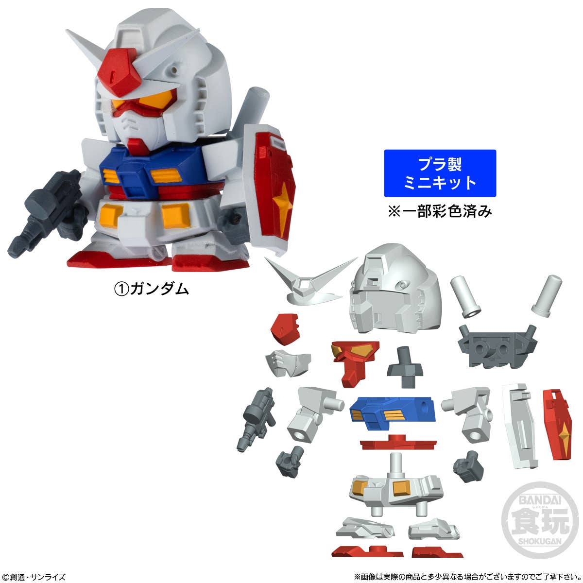 This is a series of gashapon (capsule toys) or trading figures depicting characters or mecha from the Gundam universe.