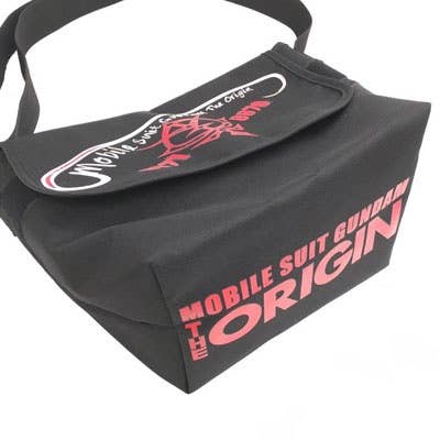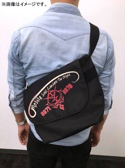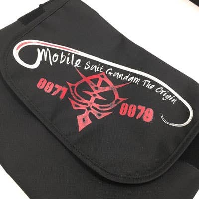 Measuring 38cm wide at the top and 24cm wide at the bottom, 28cm tall and 18cm deep, this sturdy polyester messenger bag features a hook-and-loop-tape closure and a zipper pocket inside, and really awesome "Mobile Suit Gundam: The Origin" Zeon graphics on the outside!