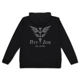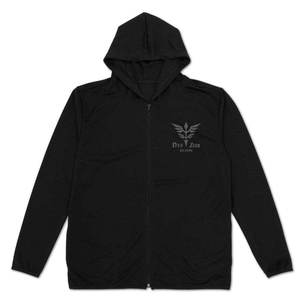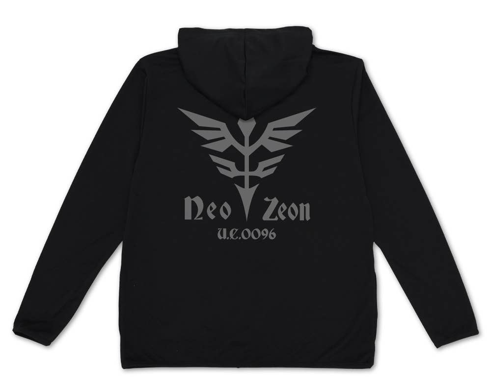 This hoodie from Cospa features the Neo Zeon emblem big and bold on the back, with a small version across the front left chest! It's made of a special lightweight fabric (4.4 ounces) that has great breathability and a smooth texture. It absorbs water quickly, dries quickly when wet, and gives you UV protection up to UPF 25! It's ideal for sun protection on days with strong sunshine, and is especially useful when you'll be indulging in activities on or around water. Please be aware that the hood has been designed to be small, focusing on the appearance of the print on the back. Order yours now!