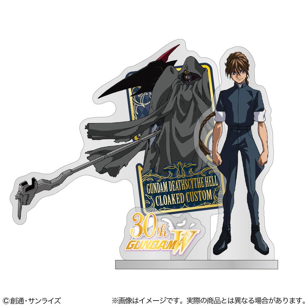 Sunstar Bungu salutes the 30th anniversary of "Gundam Wing" with new items, including this acrylic stand of Duo Maxwell together with the Gundam Deathscythe Hell Cloaked Custom! Order it for your own collection today!