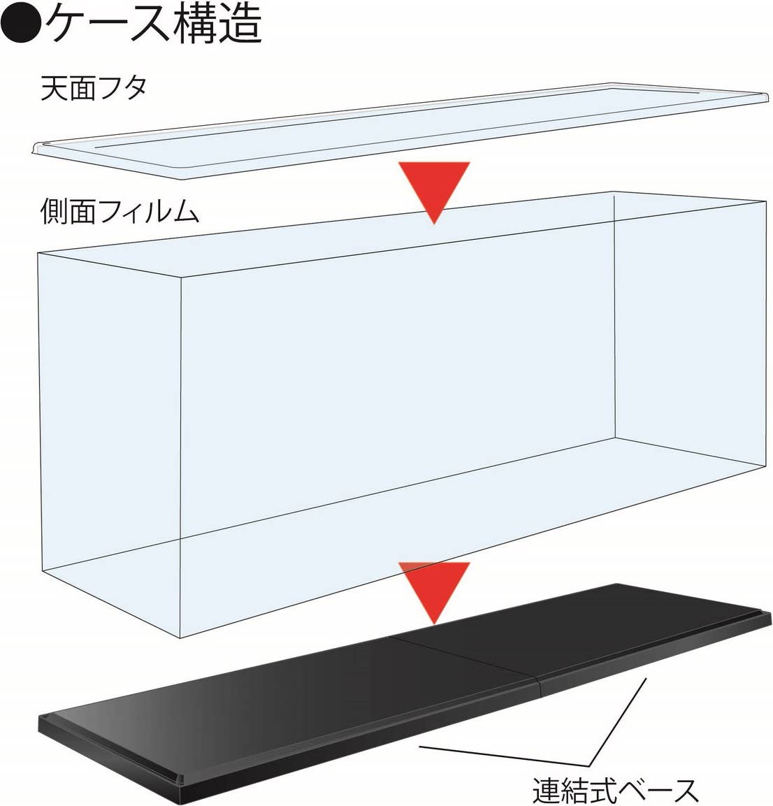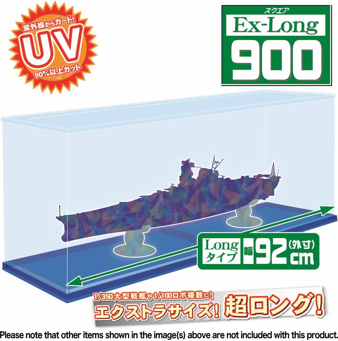 Hobby Base's popular line of model cases just got even bigger! The Ex-Long900 series boasts a huge 92cm long exterior so it can easily fit 1/350 scale ship models. It's also great for fitting 1/100 scale mobile suits, figures, or other items in a nice lineup. The case features around a 90% UV cut to help protect your collectible from sunlight (calculated by measuring the ultraviolet light intensity in the layer area of 290 to 390nm), and will protect your item from dust as well. The case walls can also fold up, making it easier for transport or storage. This version of the case features a marine blue clear base. Order today!