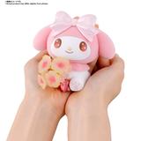 My Melody joins Bandai's "mofamofy" figure lineup! She's made in soothing pastel colors, is flocked for a fuzzy feel, and she presents us with a bouquet of phlox andromeda, which means gentleness and pureness in the traditional language of flowers. You'll smile every time you see her -- order her for your own collection today!