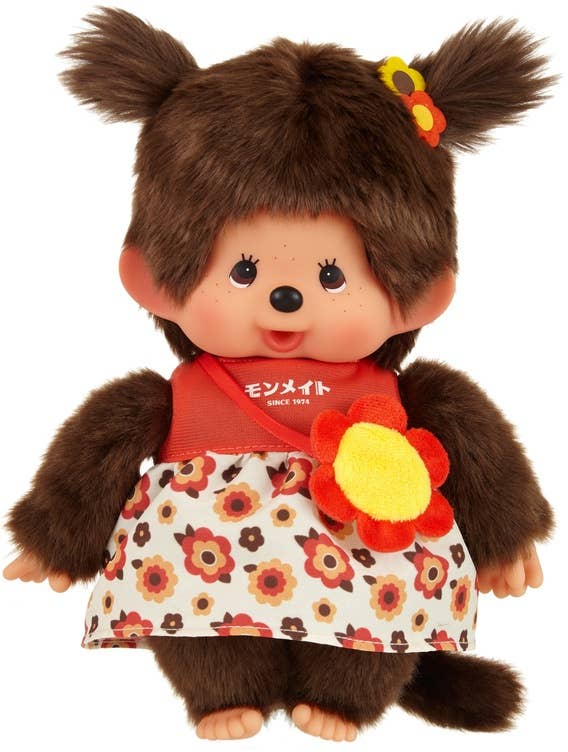 This adorable Moncchichi wears a nostalgic floral-print outfit, with die-cut flowers decorated here and there for extra cuteness. Order yours today!