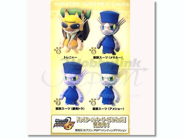 In collaborating with Bandai, vinyl toy designer Touma lent his artistic vision in creating a variety of grinning figures of Airou from "Monster Hunter Portable 2nd G" for this trading figure release! Airou is represented in different outfits and color variations in this lineup that includes Otomo Airou, three cook coats (Airou, yellow tiger, and red tiger), Torenyaa, and three Itame (Japanese cook) suits (Meraruu, Ginsei Tora, and Ameshoo), for a total of eight possible types to trade and collect. Sold by the randomly packed box of eight. Please note that these are trading figures and are individually sealed and randomly packed in boxes of 8 by the manufacturer before shipment to HobbyLink Japan. As a result we are unable to honor requests for individual or specific figures, nor can we promise you which one(s) you will receive in a box. Please order only if you are willing to accept any of the possible types.