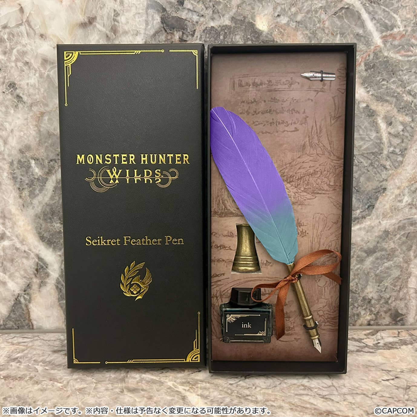 Capcom brings us a colorful feather pen based on Secreto from "Monster Hunter Wilds"! The vibrantly colored feather pen is a wonderful addition to your collection, and makes a great interior decoration item too! Ink and a pen stand are included. Order yours today!