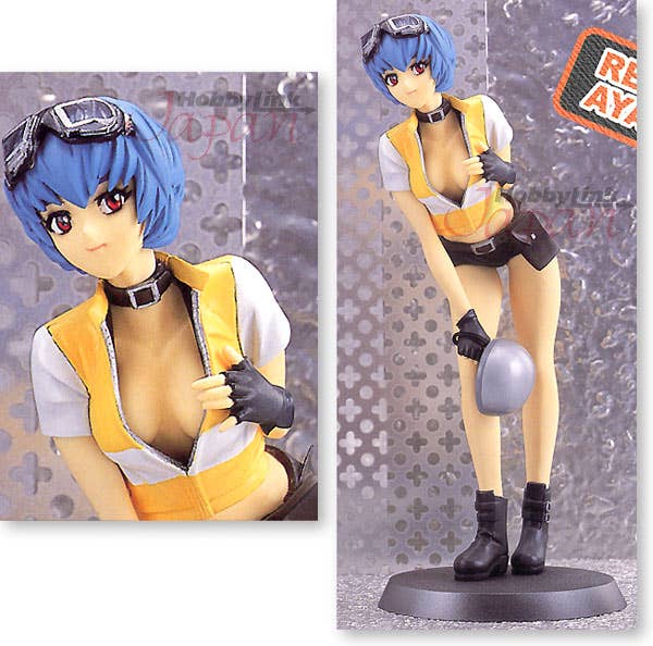 Yet another figure of Ayanami Rei, but this time wearing a biker outfit and revealing a lot of cleavage! Her revealed chest area is made of a soft material with added baby powder for a smoother touch!