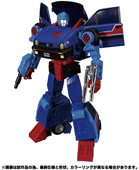 Skids is the newest member of Takara Tomy's "Transformers Masterpiece" lineup! He transforms between his robot form and Honda City Turbo form with ease, and he comes with two weapons: a liquid nitrogen rifle and a twin electronic blaster. The weapons can be stored in the City Turbo's hatchback. Don't miss out, order yours today!
