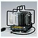 Nice, quiet (not silent) linear motor free piston compressor for your airbrush; out of the box it weighs 2.4 kg and measures 160x120x160cm. Runs on 100V AC current (50/60Hz) with a 31/29W power consumption. 0.1MPa standard pressure; 0.12MPa maximum pressure. 5.2L/min air aspirated when working with 0.05MPa pressure. Has a built-in hose with a joint for Mr Pro-Spray airbrush and comes with an S-joint adapter for other airbrushes. Very durable. Note: warranty is valid only in Japan.