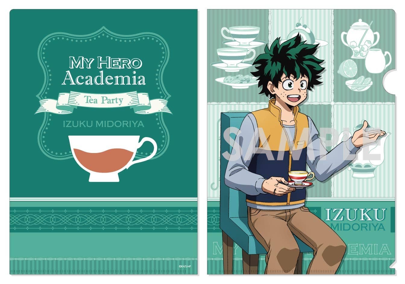 "My Hero Academia" brings to you a new line of clear files with a fun tea party theme. Using newly drawn artwork, this clear file showcases Izuku Midoriya in comfy clothes at a tea party setting, overtop a teal background. Keep your documents stored safely and securely with this file. Order today!