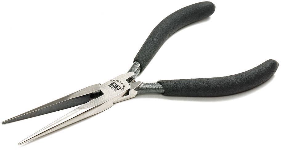 These needle nose pliers are for use with R/C, static model products and more, with long, slimline jaws providing superb grip. The pliers can be used as one would tweezers, and are also suitable for bending and cutting materials such as brass wire.